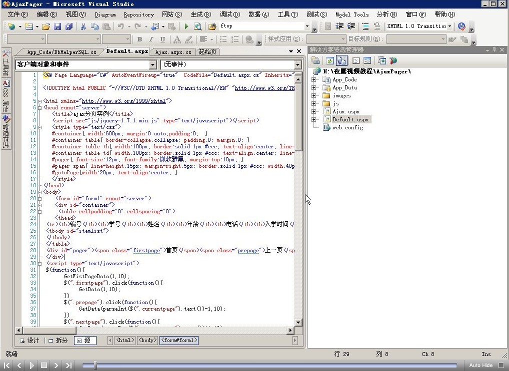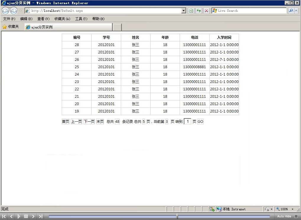 查询功能是开发中最重要的一个功能,大量数据的显示,我们用的最多的就是分页。在ASP.NET 中有很多数据展现的控件,比如用的最多的GridView,它同时也自带了分页的功能。但是我们知道用GridView来显示数据,如果没有禁用ViewState,页面的大小会是非常的大的。而且平时我们点击首页,下一页,上一页,尾页这些功能都是会引起页面回发的,也就是需要完全跟服务器进行交互,来回响应的时间,传输的数据量都是很大的。AJAX的分页可以很好的解决这些问题。
