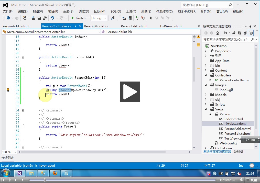 本套教程主要讲解用mvc模式开发人员信息管理系统,通过js在页面构建object,用json格式把数据从前台视图通过ajax传递到控制器,然后调用model里面的方法,实现人员信息数据的添加、删除、修改、分页等,同时也讲解了很多表单情况下json格式数据自动填充表单的功能。