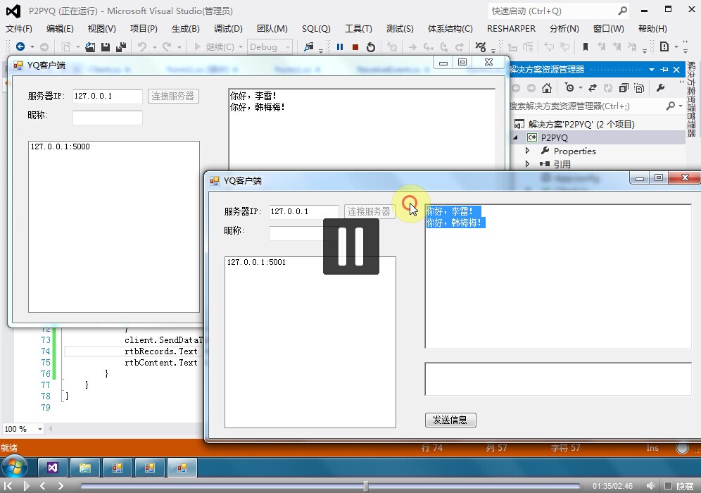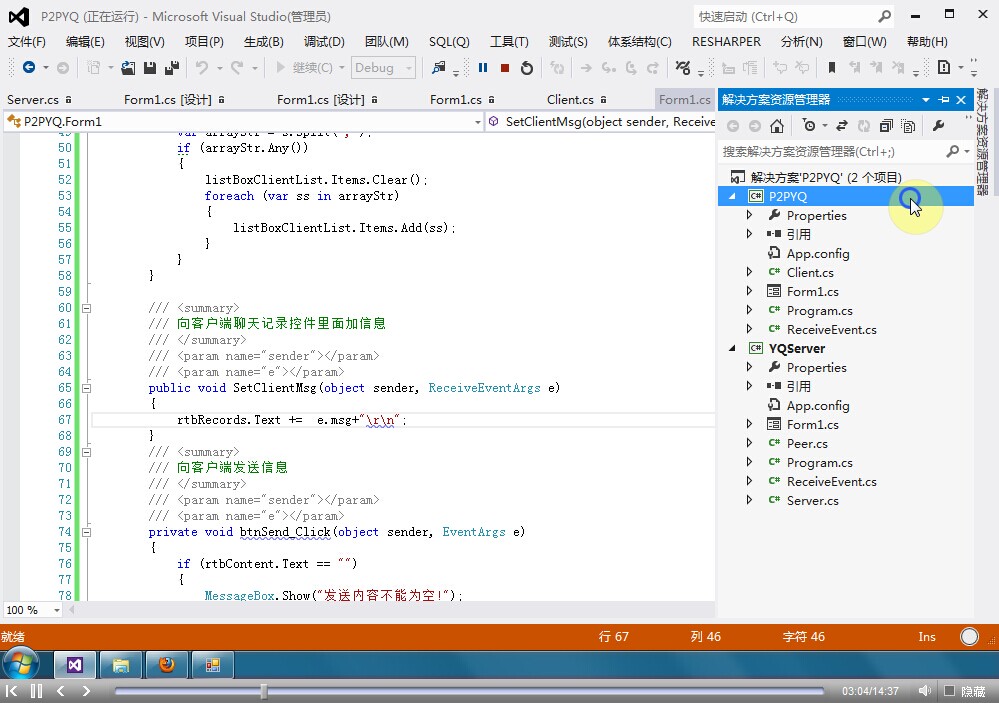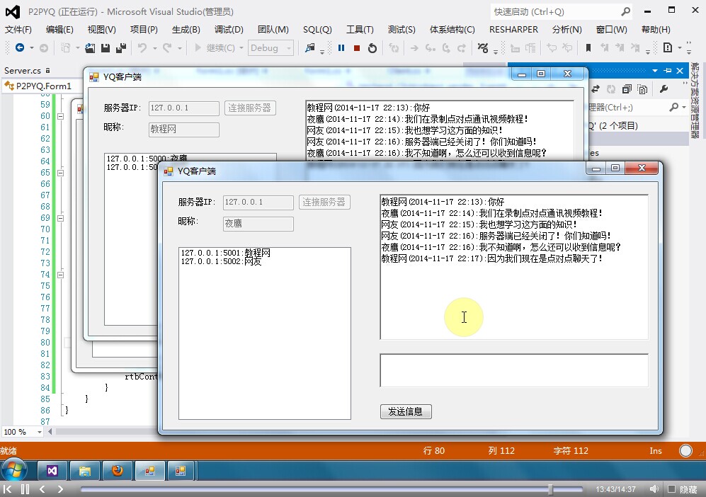 C#实现点对点通讯实例视频教程录制完毕