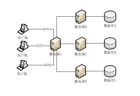 客户机使用浏览器访问服务器A,服务器A为了业务需要与其他各种应用部署在服 务器B、C、D